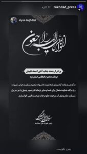 همچنین، امیر رستمی مدیر مسئول رخداد پرس هم این مصیبت وارده را به سردار نگهبان تسلیت عرض نموده و برای ایشان و سایر وابستگانشان صبر جمیل اجر جزیل مسئلت دارد.