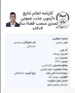 در آزمون قضاوت در آبان ماه سال ۱۴۰۴ شرکت کردم و توانستم رتبه یک این آزمون را به دست بیاورم.